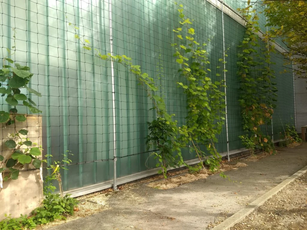 Groene zonwering door 160 m² bladverliezende klimplanten