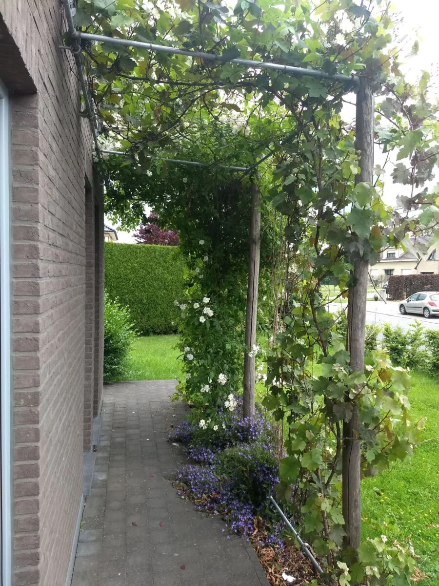 Denk aan klimplanten zoals Clematis armandii en Toscaanse sterjasmijn. Een zonwering met klimplanten boven de ramen kan daar dienen als zonwering. Om in de winter voldoende zon binnen te laten kies je dan best voor bladverliezende klimmers zoals rode wijnstok, wilde kamperfoelie, kiwi en sierkiwi…