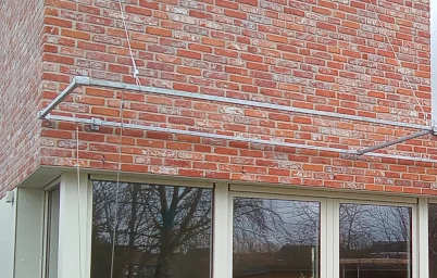 De zonnewering kan gemaakt worden uit rond of vierkante galva buismateriaal en koppelingen.