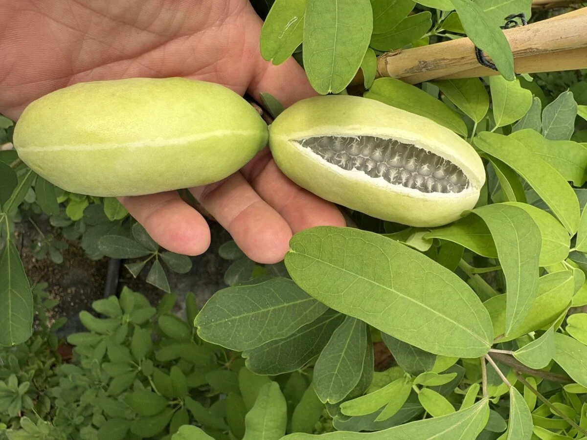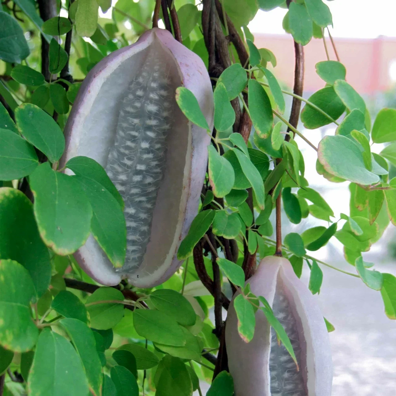 Bij kruisbestuiving met een tweede exemplaar of een andere Akebia-cultivar kunnen zich opvallende, purpere, worstormige vruchten vormen van 8 tot 10 cm, gevuld met wit, eetbaar, geleiachtig vruchtvlees. De witte klimaugurk klimt door te winden en kan 6 tot 10 meter hoog worden. Ze is goed winterhard en gedijt in zon tot halfschaduw in vruchtbare, goed gedraineerde grond. De krachtige groeier vraagt na de bloei een regelmatige snoeibeurt om de groei in toom te houden. Een verfijnder en zeldzamer alternatief voor de gewone Akebia quinata, ideaal voor pergola's, hagen en grote muren.