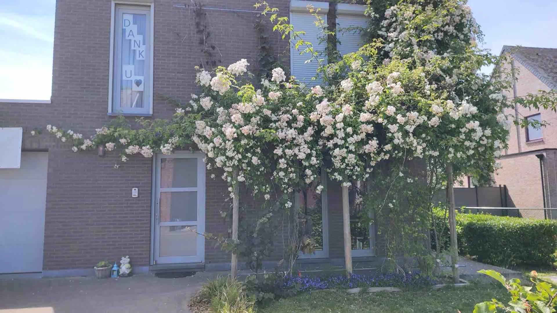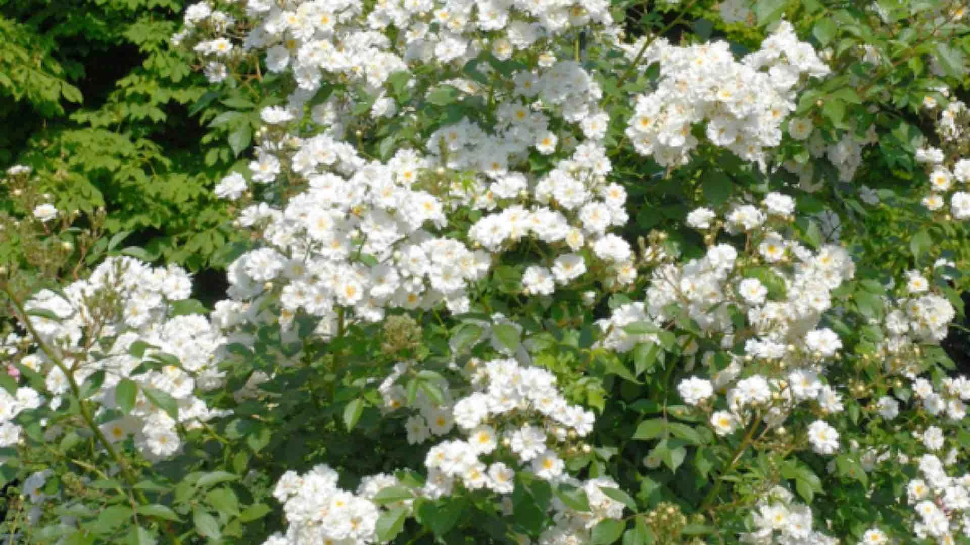 Rosa 'Guirlande d'Amour' is een weelderige klimroos die van juni tot in de herfst rijkelijk bloeit met dichte trossen kleine, gevulde, witte bloemen met een heerlijk muskusachtig parfum. De bloemen trekken veel bijen en vlinders aan. Het blad is fijn, donkergroen en gezond, met een goede resistentie tegen ziekten zoals meeldauw en sterroetdauw. Deze klimroos kan een hoogte van 3 tot 4 meter bereiken en is ideaal voor pergola's, bogen en muren. De plant is bladverliezend, goed winterhard en verkiest een zonnige tot halfschaduwrijke standplaats in vruchtbare, goed gedraineerde grond. Na de eerste bloei verschijnen er kleine rozenbottels die tot in de winter sierwaarde bieden. Snoei na de bloei voor een tweede bloei later in het seizoen.